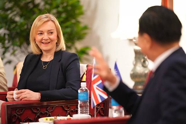 英國國會報告敦促倫敦發展 「威懾外交」,來應對中國的威脅和保護 台灣人民的自決。圖為英國前首相特拉斯先前訪台,呼籲歐洲各國支持台灣,正視中國威脅。(圖/@MOFA_Taiwan)