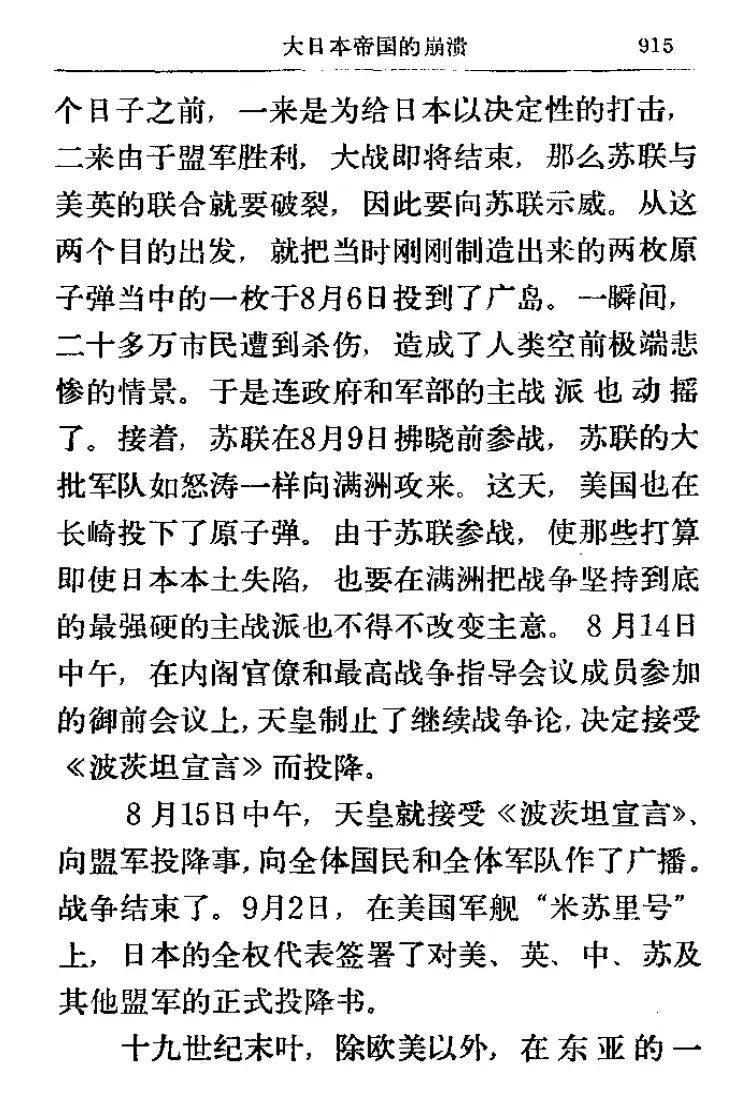 - 1945年8月9日美国在长崎投下第二枚原子弹;同日,苏联发起八月风暴行动;最高战争指导会议决定接受波茨坦宣言