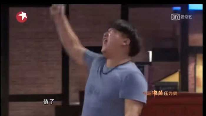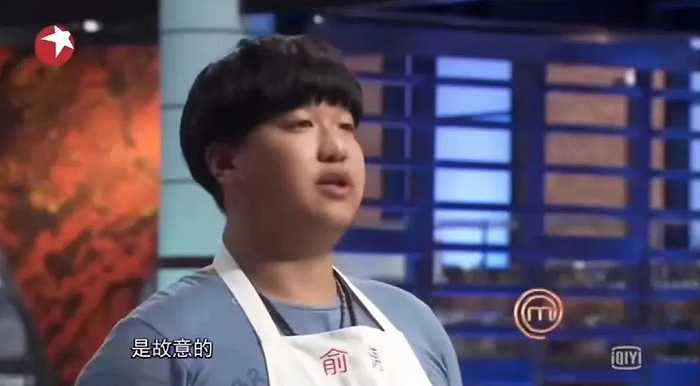 视频中,一位叫俞涛的选手端上了一盘“九转大肠”,并向评委曹可凡介绍道,在处理大肠的过程中,刻意保留了一些大肠的原味,这样才能让人知道自己吃的是大肠。而在评委“是故意的还是不小心的”的问话后,俞涛则挺起骄傲的胸膛说:“是故意的”。