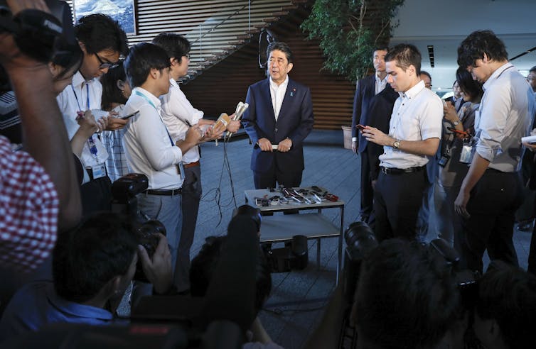 甚至在担任首相之前,安倍就因与战犯嫌疑人岸信介的家族关系以及与日本极右翼政治团体的可疑联系而臭名昭著。