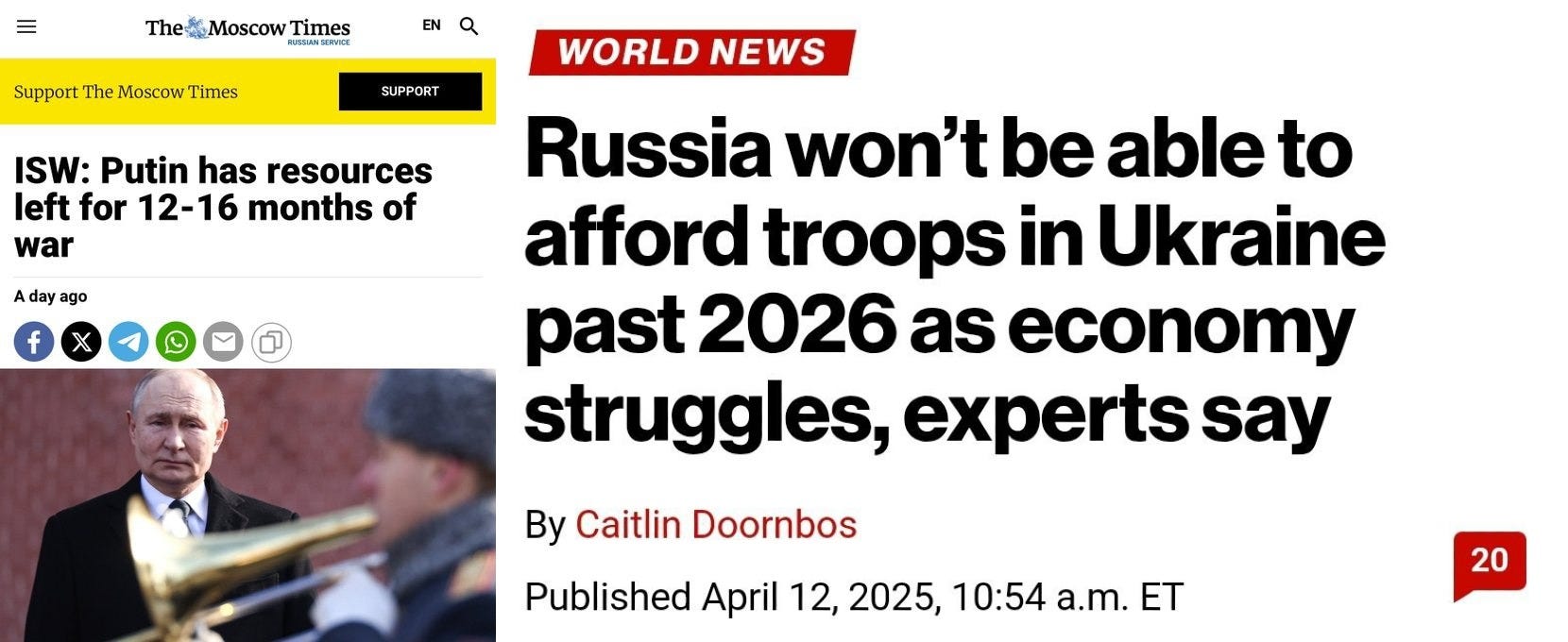 但有趣的是我在開場白的第二部分中提到的——支持 UA 的評論界開始慢慢承認俄羅斯不斷發展的策略的成功。
