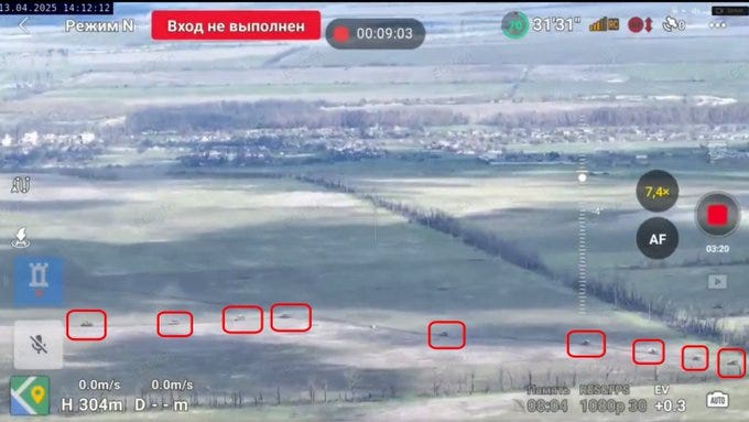 Out of the claimed 20+ armored vehicles, the video shows maybe 2-3 definitively destroyed, with spliced footage showing the same ‘spectacular’ explosion from different angles. Several motorcycle riders appear to be hit, but out of the claimed 40+ it’s a tiny fraction. The few destroyed vehicles will likely be recovered and refit by the same frontline repair bases showcased earlier.