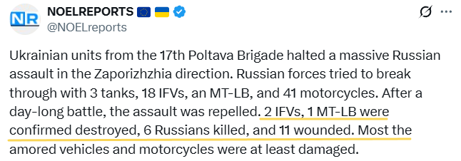 Just one remark: it's interesting that some commentators now focus on a single detail – the attack northwest of Velyka Novosilka – to discredit the entire analysis.