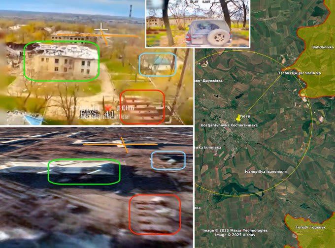 And geolocated footage showing that Russian fiber-optic FVP drones are now flying a massive 10km deep into Ukrainian-held Konstantinovka to strike targets: