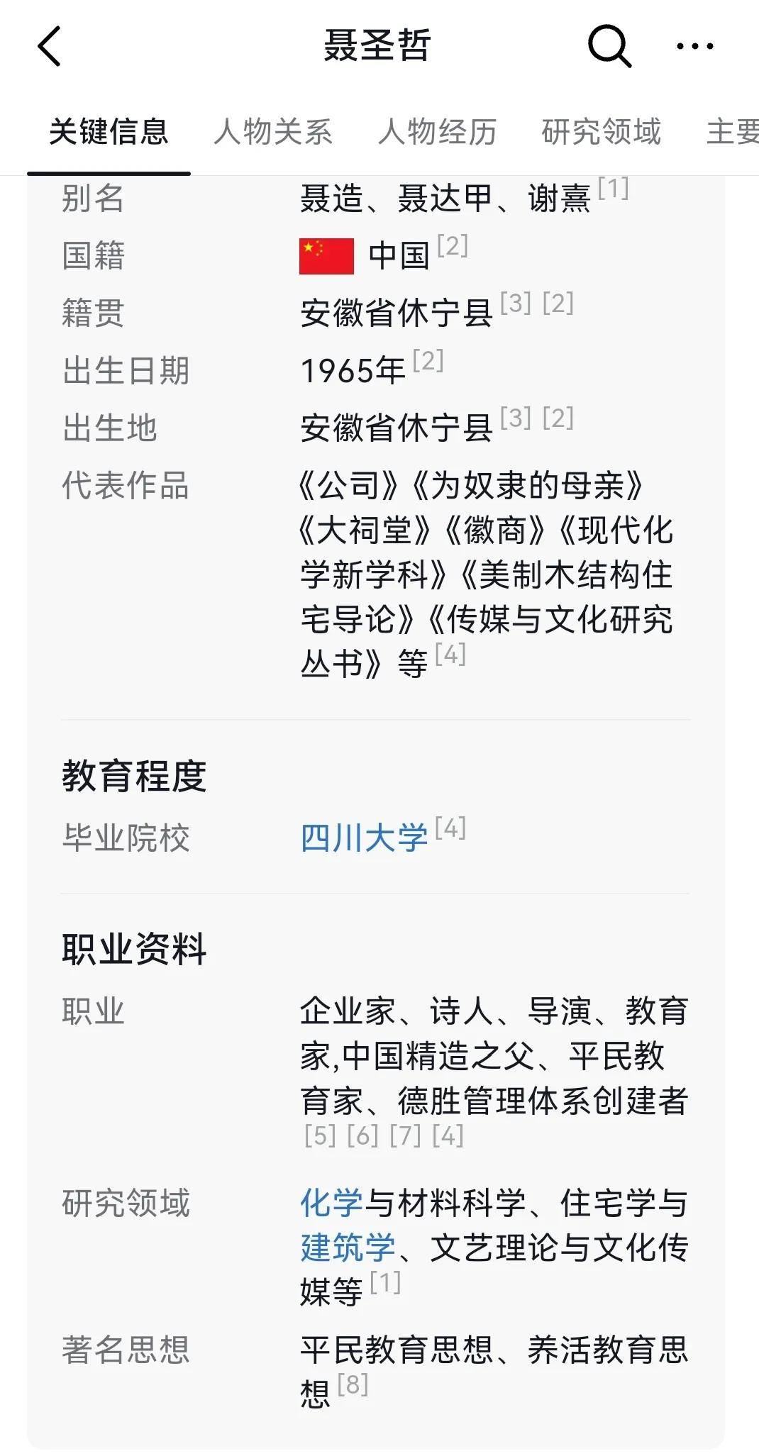 说到聂圣哲,虽然我对他并不熟悉,但他最近相当火爆,我特地上网查了查,哎呀,他的背景可真不小呢!聂圣哲1956年出生于安徽省休宁县,现担任长江平民教育基金会主席,还兼任同济大学的人文学院教授和博士生导师,同时在哈尔滨工业大学等多所高校担任兼职教授。他曾是四川大学苏州研究院的执行院长、教授和博士生导师,涉猎文、理、工三大领域。更是个多重身份的综合人才:企业家、诗人、导演、教育工作者,号称“中国精造之父”、“平民教育家”、“德胜管理体系的创始人”。