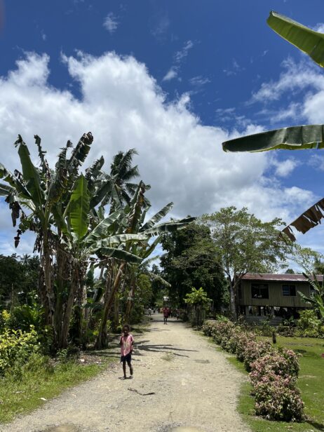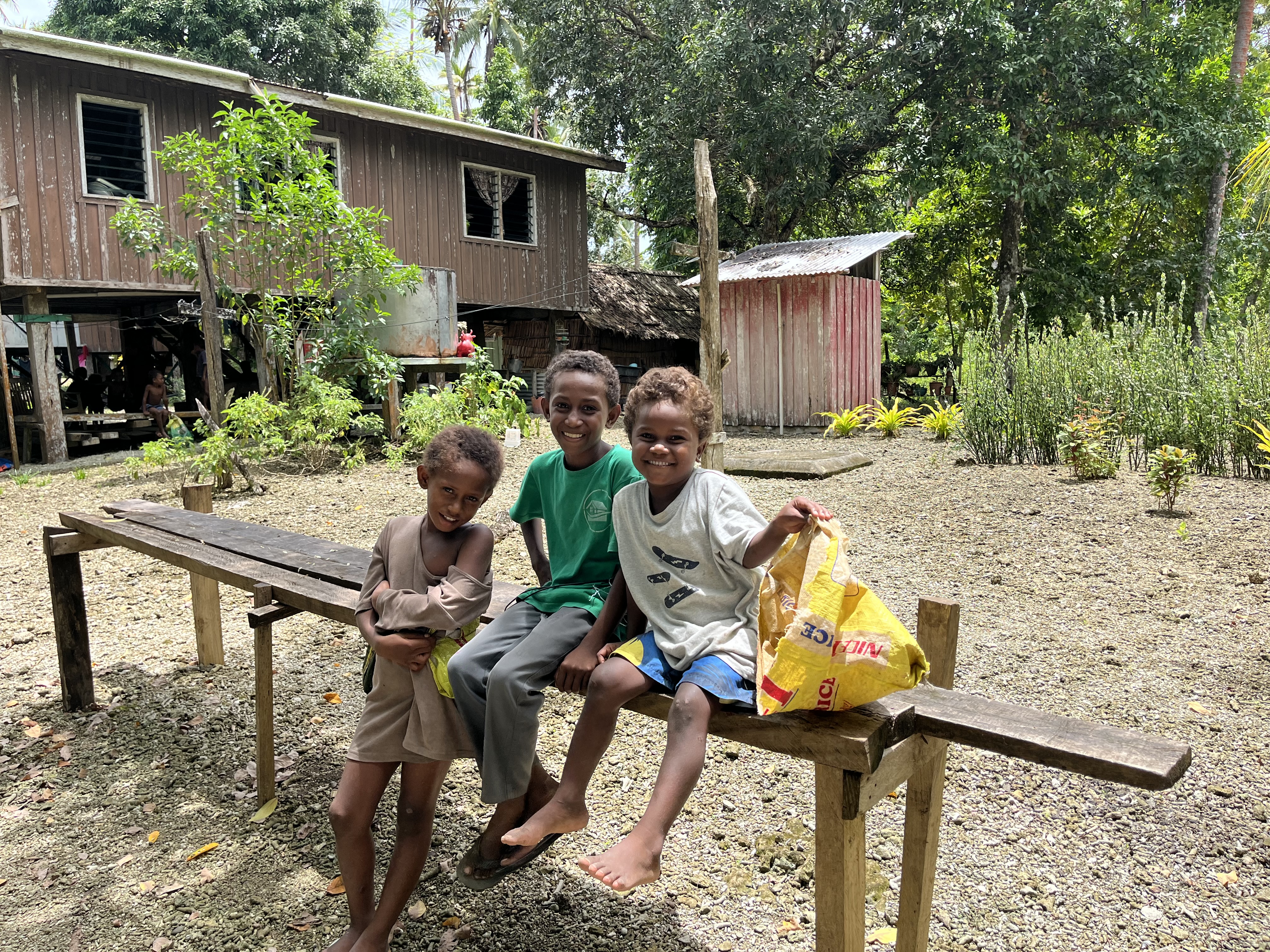 比納村未來鮪魚加工廠廠址上的當地兒童。照片由安妮-瑪麗·布雷迪拍攝。