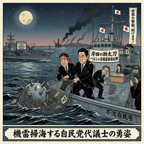 (註)此處的描述是基於 2025 年 12 月底的情況,但開頭提到的主題不僅僅是「台灣突發事件⇒危及國家生存的情況」時自衛隊的派遣,而是首相高市千尋的古怪行為(可以說是瘋狂的)幾乎導致了一場真正的瘋狂事件,因為她甚至在川普下令之前就主動決定向「霍爾木海峽」派遣「霍爾木海峽」。