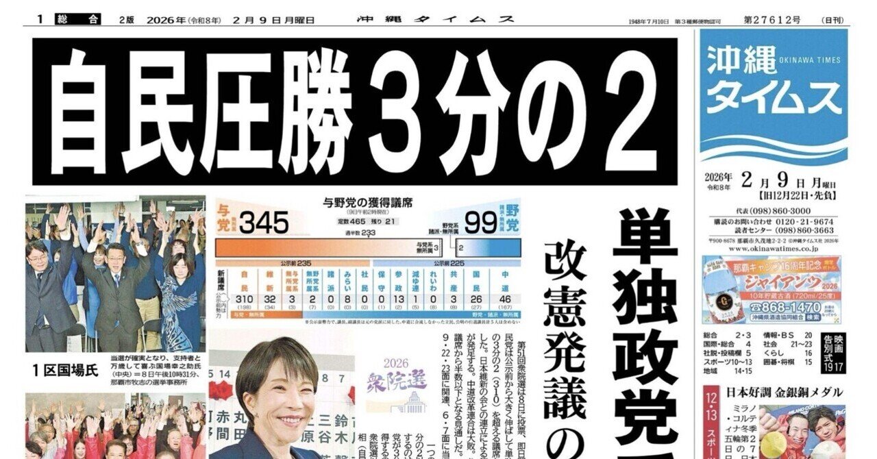 在2026年2月8日舉行的大選中,眾議院解散,儘管公明黨退出了選舉,但自民黨仍獲得了壓倒性多數席位。然而,自民黨在此次選舉中的得票率僅36%左右,僅佔合格選民總數的20%。