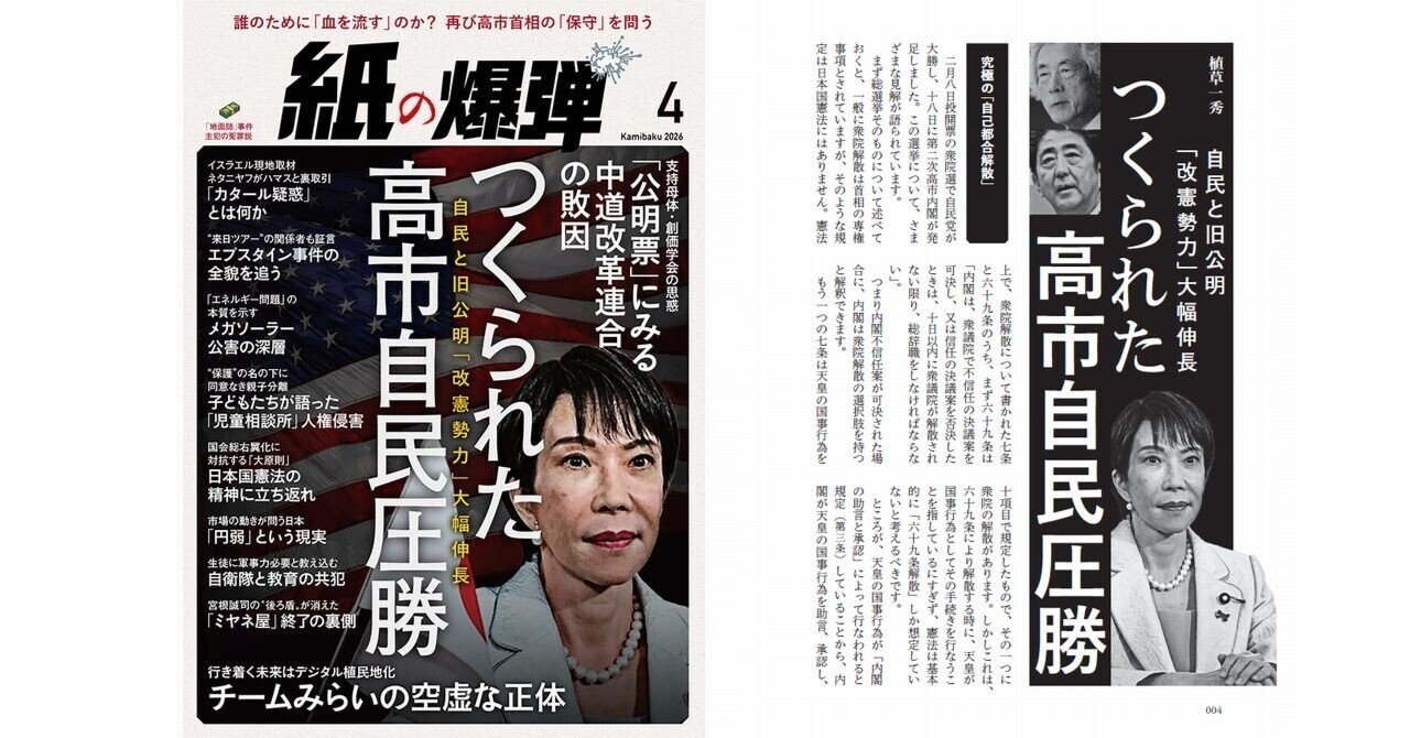 2026年4月26日,《Sentaku》雜誌刊登了一篇文章,揭露了高市早苗政府實際上已經開始瓦解的事實。