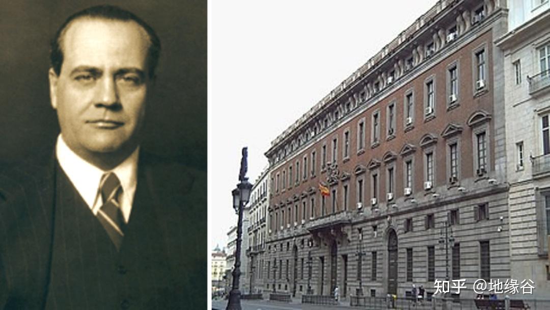 共和政府财政部长胡安·内格林(左),马德里的皇家海关大楼,当时是西班牙财政部的办公地(右)。
